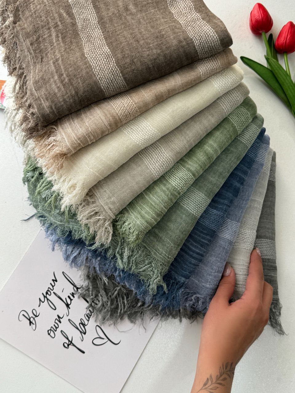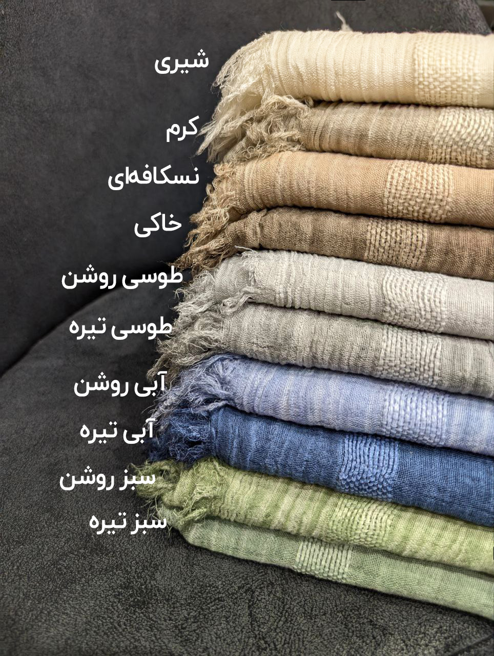 این شال نخی و سبک و دارای خط‌های در طول شال است.