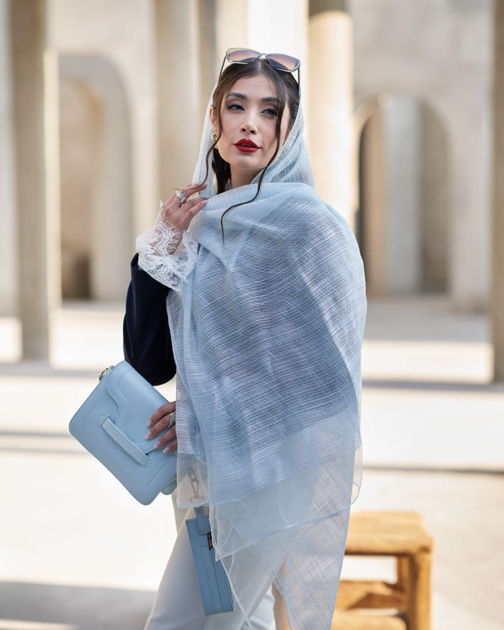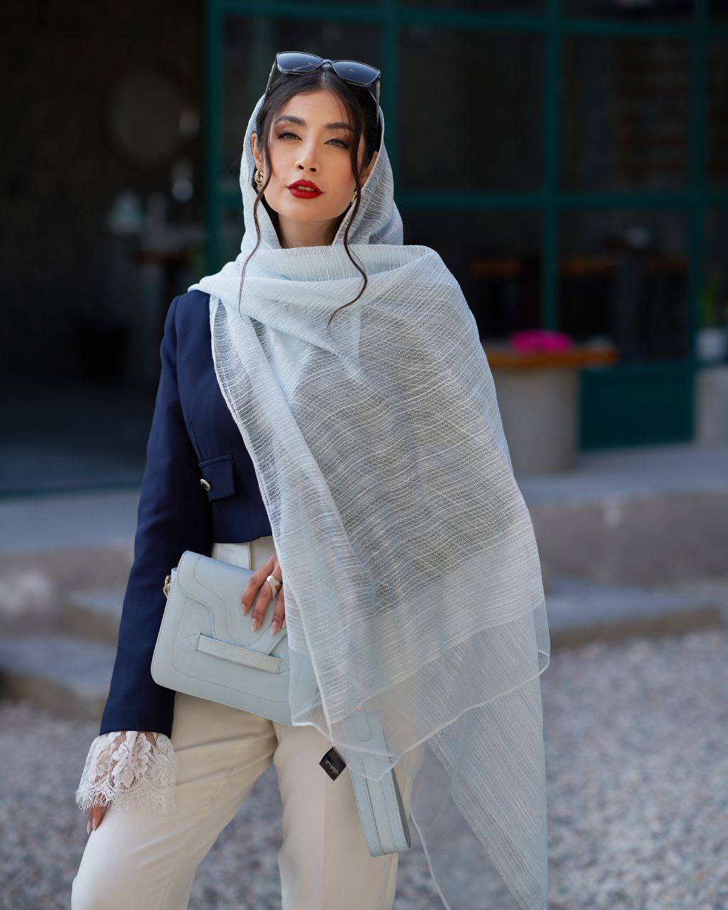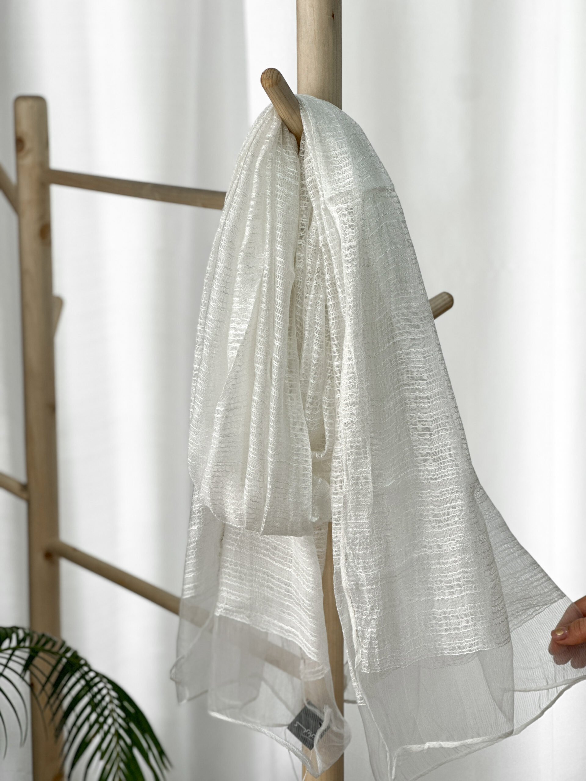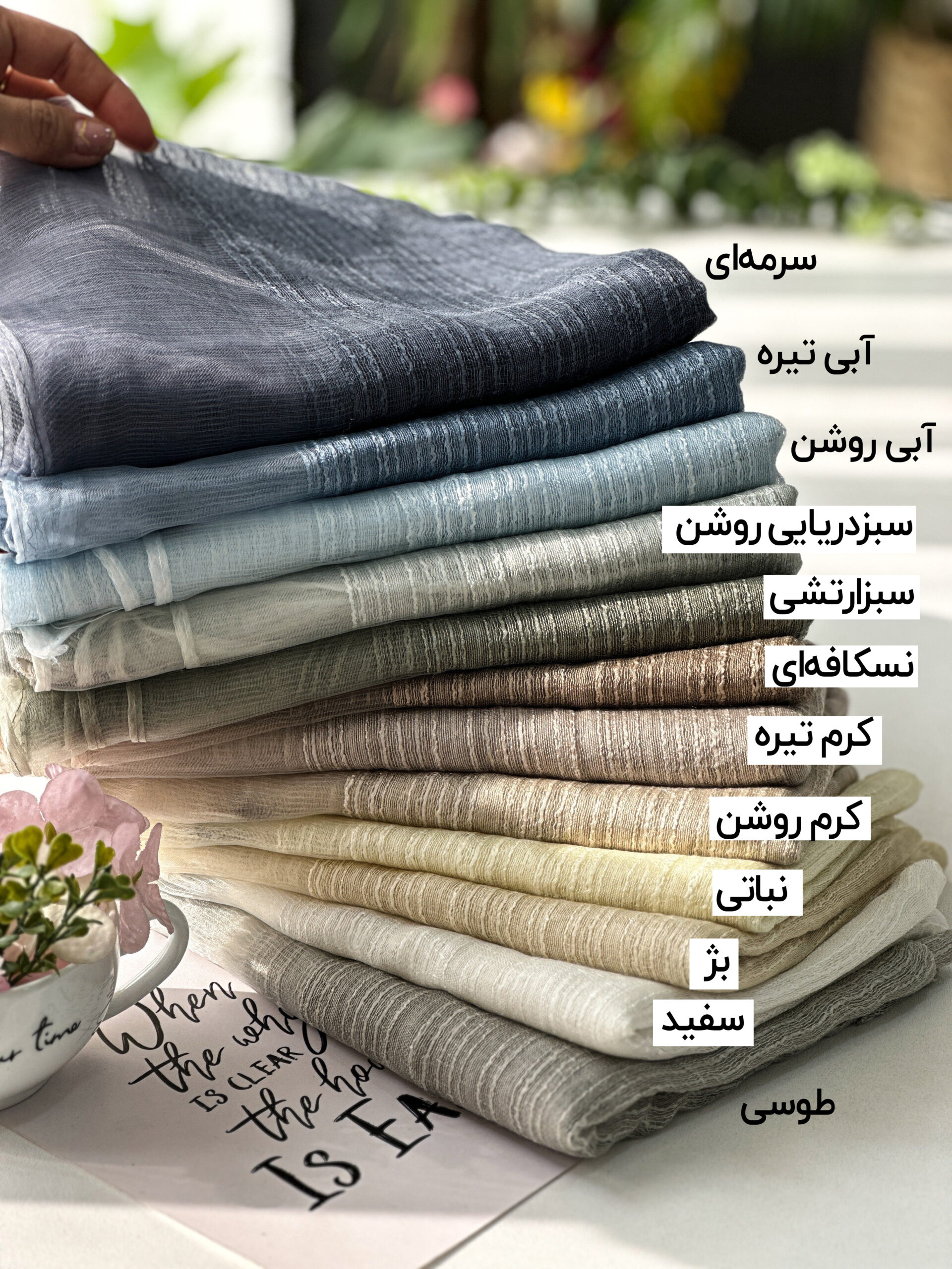 این شال دارای خط‌هایی در عرض شال است و حالت حریر دارد