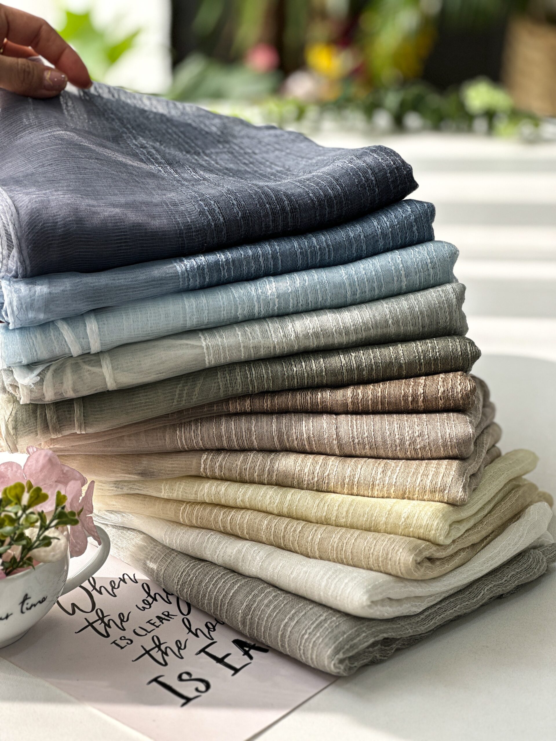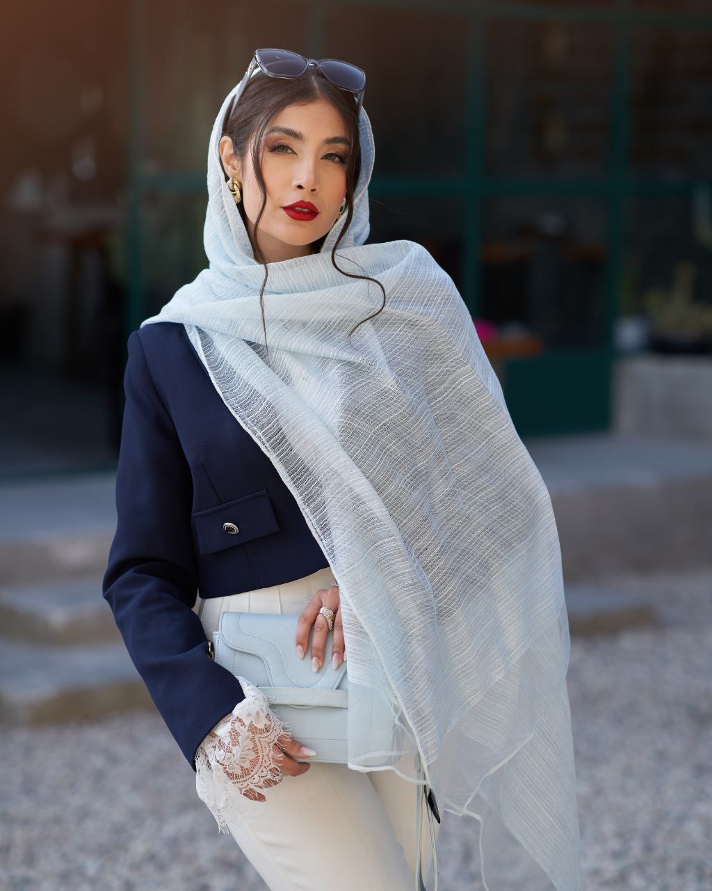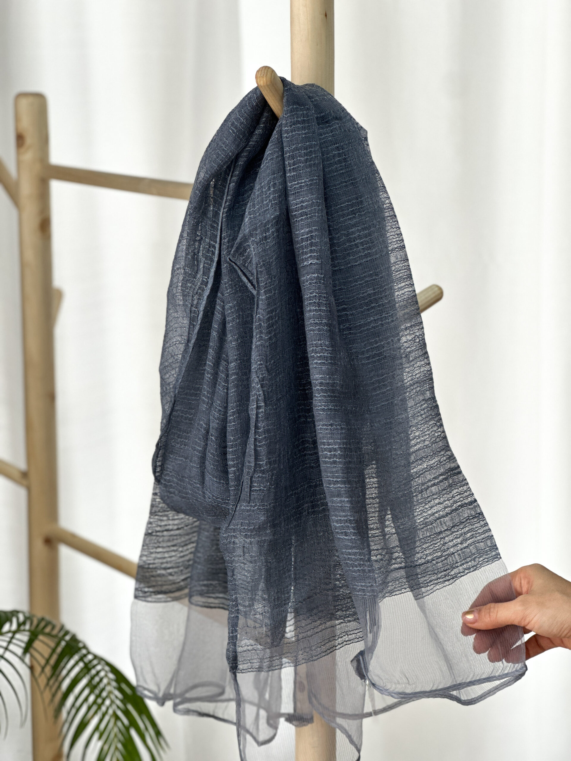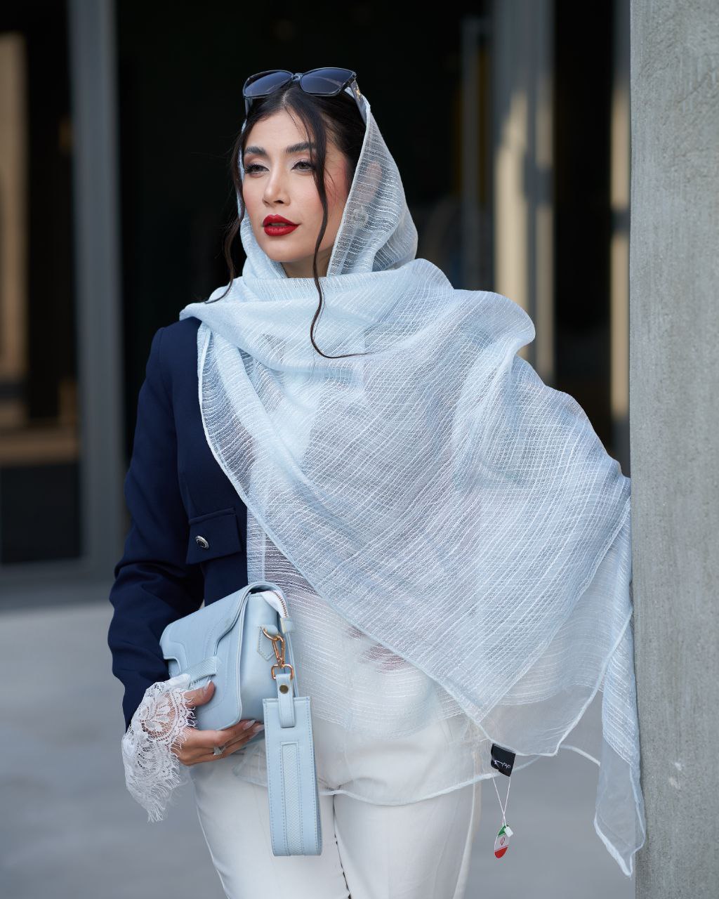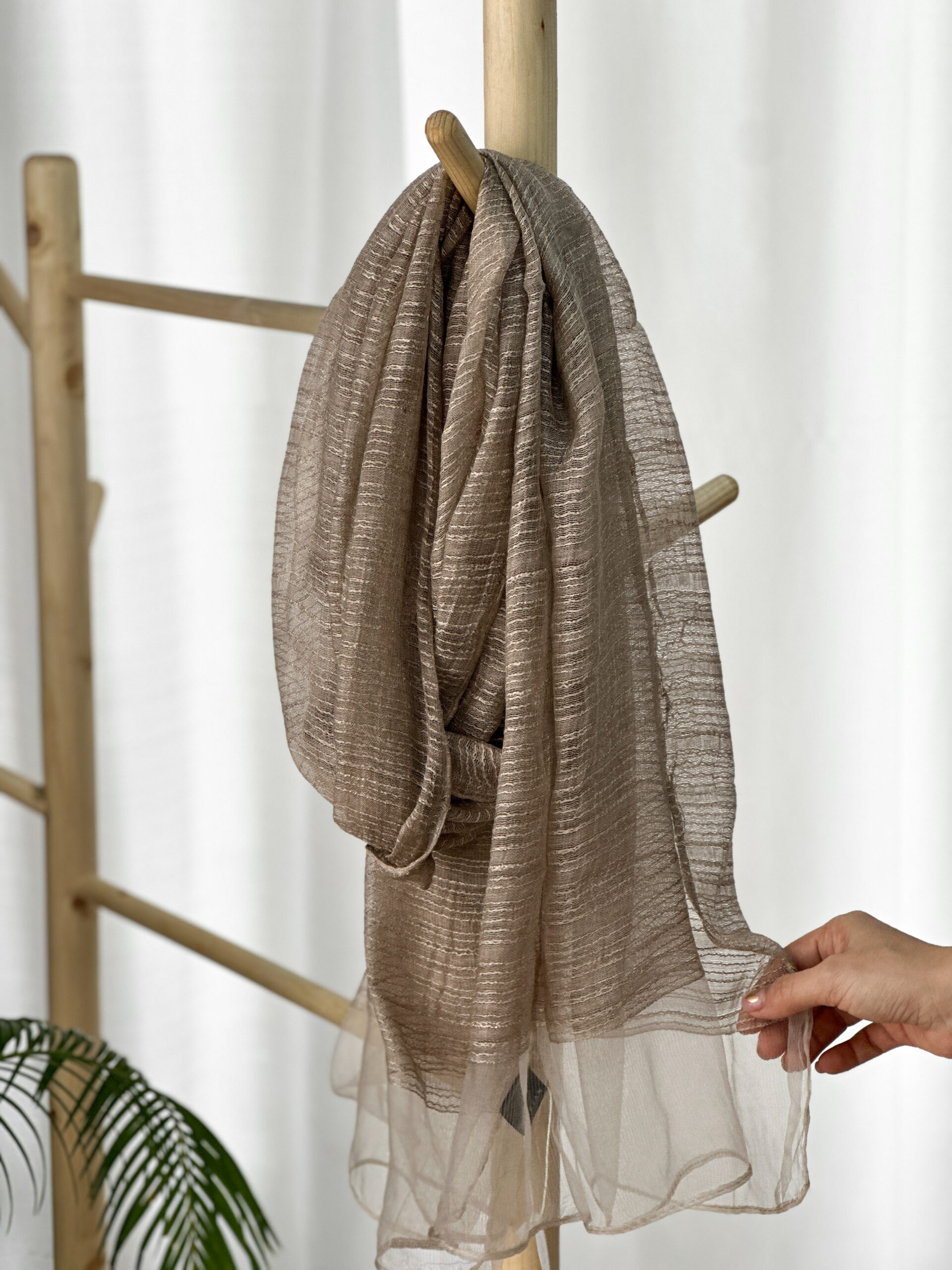 این شال دارای خط‌هایی در عرض شال است و حالت حریر دارد
